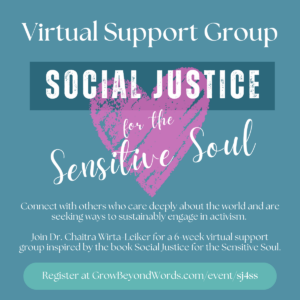 Read MoreVirtual Support Group: Social Justice for the Sensitive Soul (Tuesdays or Thursdays)
